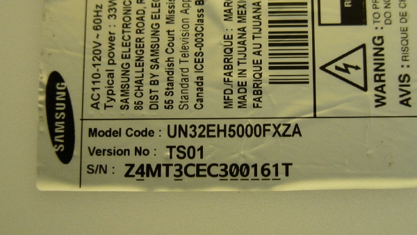 THIS PART WAS PULLED FROM SAMSUNG 32" LED MODEL # UN32EH5000F, MODEL CODE: UN32EH000FXZA, VERSION No: TS01.
