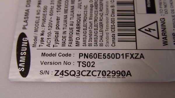 THIS PART PULLED FROM WORKING 60" PLASMA TV, MODEL # PN60E550D1F, MODEL CODE # PN60E550D1FXZA, VERSION No: TS02, UNIT WORKING COMPATIBLE ALL MODEL # BELOW.