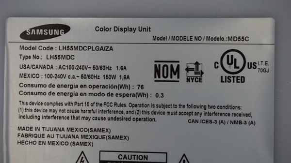 THIS PART WAS PULLED FROM SAMSUNG 55" LED TV, MODEL # LH55MDCPLGA/ZA.