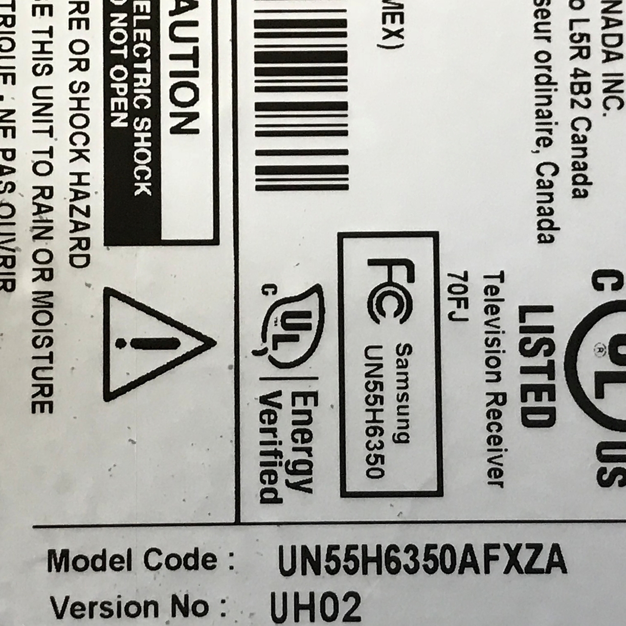 THIS PART WAS PULLED FROM 55" SAMSUNG LED TV MODEL # UN55H6300AFXZA.