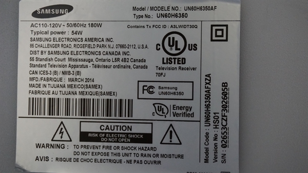 Manufacturer part number: BN94-07410R, BN94-08133H, BN97-08043A, BN41-02157B, UN60H6350AFXZA