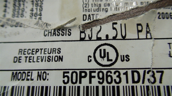 THIS PARTS WE PULLED FROM PHILIPS PLASMA TV 50", MODEL # 50PF9631D/37, CHASSIS # BJ2.5U PA, WE CHECKED AND TESTED ALL FUNCTION BEFORE PUT ON HDTVPARTS STORE.