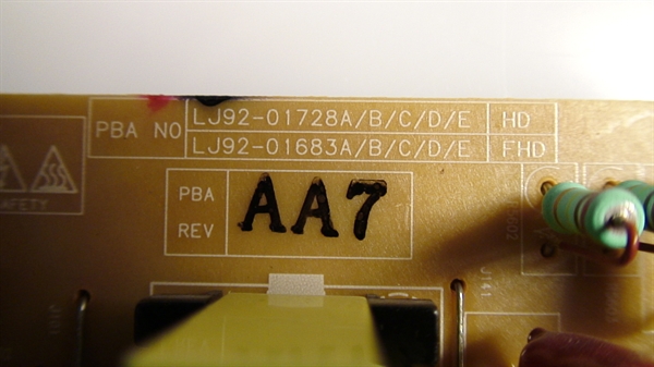 Manufacturer part number: BN96-12411A, LJ41-08458A, LJ92-01683A, LJ92-01728A