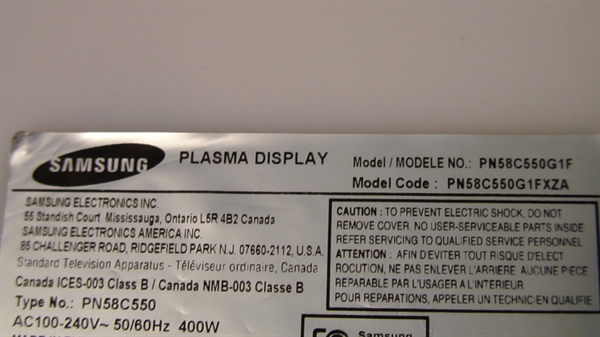 BN96-12686A, LJ41-07010A, LJ92-01685A, SAMSUNG, PN58C550G1F, NEB, E58