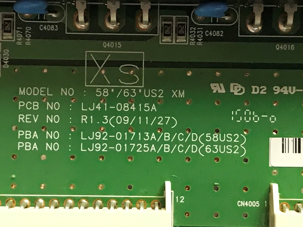 BN96-12689A, LJ41-08415A, LJ92-01725A, LJ92-01713A, PH63KRFLBF/EN, PH63KRFLBX, PJ63C800, PL63C7000YM, PN63C540G3FX, PN63C550G1, PN63C550G1F, PN63C590G4FX, PN63C7000YF, PN63C8000Y, PN63C8000YF, PS63C7000VR, PS63C7790YS, SAMSUNG X BOARD