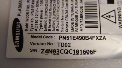 Samsung PN51E490B4FXZATD02