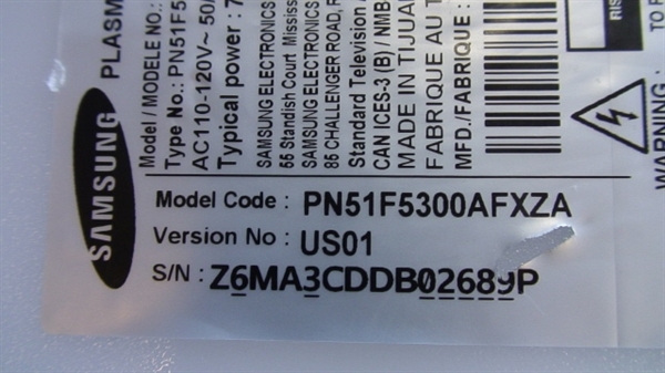 THIS PART WAS PULLED FROM SAMSUNG 51" PLASMA TV, MODEL # PN51F5300AF, MODEL CODE: PN51F5300AFXZA, VERSION # US01, UNIT WORKING COMPATIBLE ALL MODEL # BELOW.