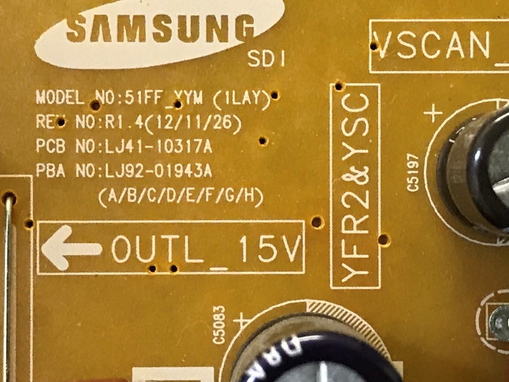 SAMSUNG 51" PLASMA TV Y- BOARD (LJ92-019413A, LJ41-10317A) UNIT FULL FUNCTION TESTED & CERTIFIED BY TECHNICIAN (100% WORKING CONDITION).