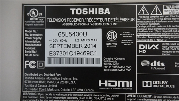 THIS PART WAS PULLED FROM TOSHIBA 65" LED TV, MODEL # 65L5400U, UNIT WORKING COMPATIBLE ALL MODEL # BELOW.