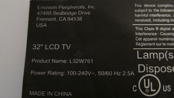 THIS PART PULLED FROM WORKING 32" ENVISION LCD TV , MODEL # L32W761.