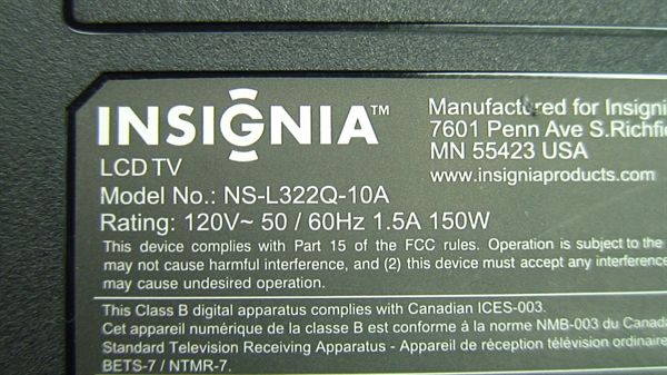 CBPFTQ9CBZK05701, 715G3269-1, E243951, A9N20104564, INSIGNIA, MODEL # NS-L322Q-10A, TVPARTS