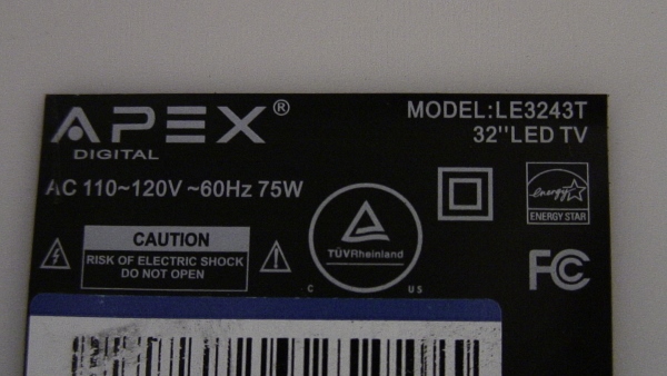 THIS PART PULLED FROM WORKING APEX 32" LED TV, MODEL # LE3243T.