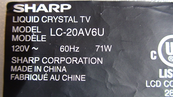 THIS PARTS WE PULLED FROM WORKING SHARP 20" LCD MODEL# LC-20AV6U.