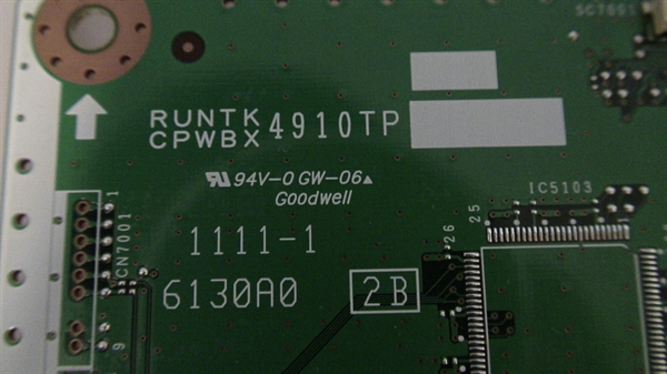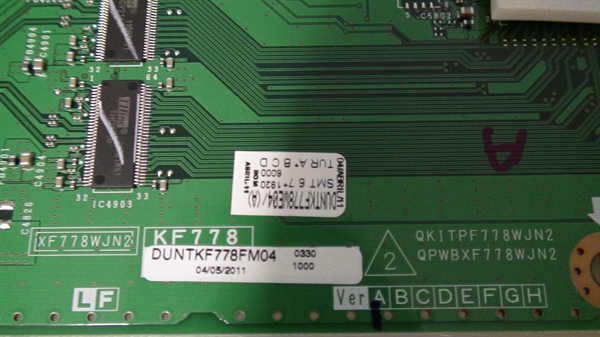 DUNTKF778FM04, RUNTK4910TP, CPWBX4910TP, QKITPF778WJN2, KF778, XF778WJN2, 1111-1, 6130A0, LC-70LE732U, LC-70LE632U, SHARP 70 LED TV TCON BOARD
