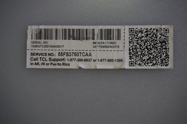 THIS PART WAS PULLED FROM DAMAGE 55" TCL LED TV MODEL # 55FS3750TCAA.