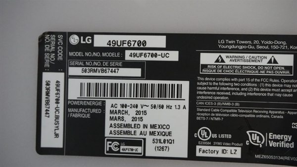 THIS PART WAS PULLED FROM LG 49" LED TV, MODEL # 49UF6700-UC, UNIT WORKING COMPATIBLE ALL MODEL # BELOW.