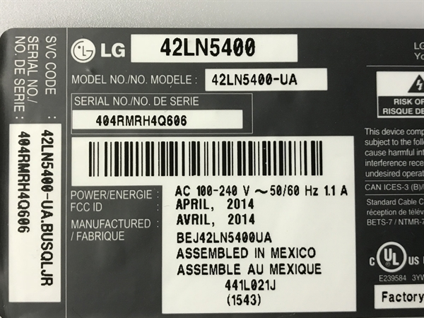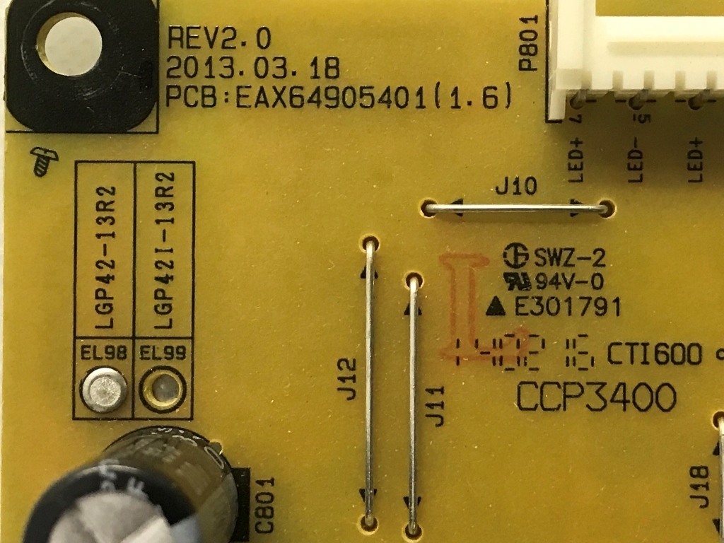 Manufacturer part number: EAX64905401, EAY62810601, 42LN5400-UA