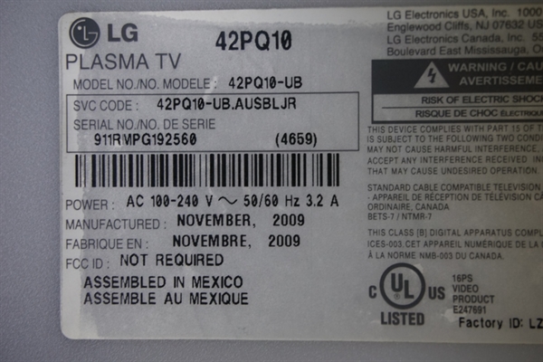 THIS PART WAS PULLED FROM WORKING 42" PLASMA LG TV, MODEL # 42PQ10, UNIT WORKING COMPATIBLE ALL MODEL # BELOW.