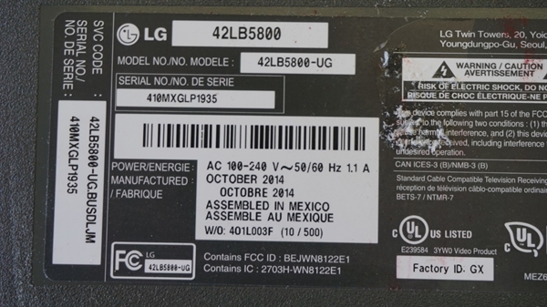 LG Electronics/Zenith 42LB5800-UG.BUSDLJM