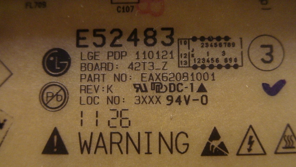 EBR68342001, EBR73004001, EAX62081001, EAX62878501, E52483, 42PT350C, 42PT350C-UD, 42PT350UD, 42PW350, 42PW350-UE, Z42PT320-UC, LG 42 PLASMA TV X BOARD