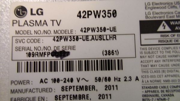 THIS PART WAS PULLED FROM WORKING 42" LG PLASMA TV, MODEL # 42PW350, SVC CODE: 42PW350-UE.AUSLLHR, UNIT WORKING COMPATIBLE ALL MODEL # BELOW.