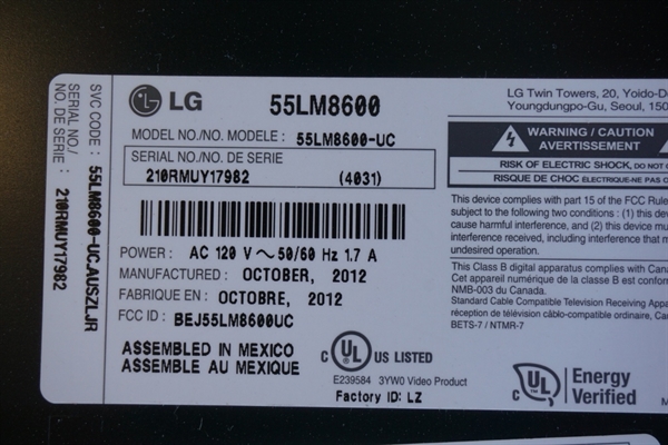 LG Electronics/Zenith 55LM8600-UC