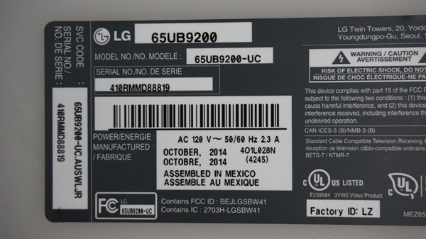 Manufacturer part number: EBR78500601, 65UB9200-UC, 65UB9500-UA, 55UB9500-UA