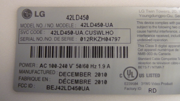 LG Electronics/Zenith 42LD450UACUSWLH0