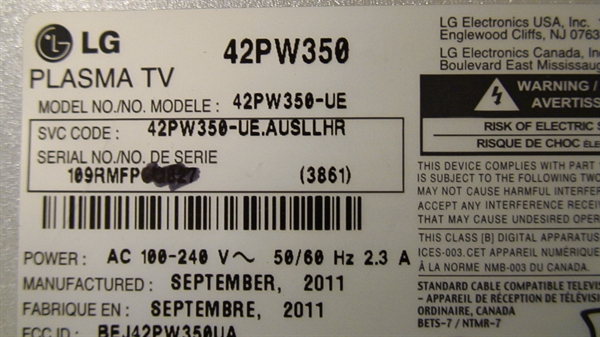 THIS PART PULLED FROM WORKING 42" LG PLASMA TV, MODEL # 42PW350, SVC CODE: 42PW350-UE.AUSLLHR, AND UNIT WORKING COMPATIBLE WITH ALL MODEL # BELOW.