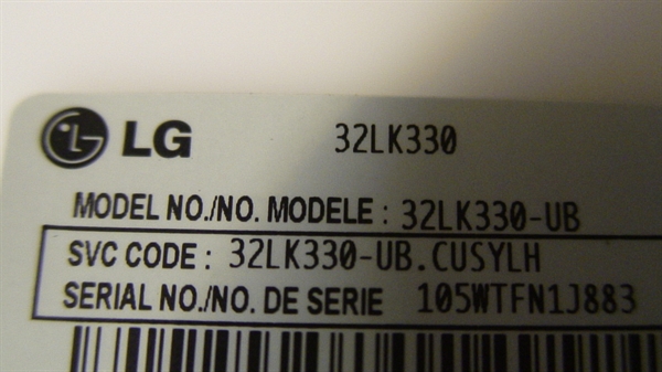 THIS PART PULLED FROM WORKING LG 32" LCD TV, MODEL # 32LK330, SVC CODE: 32LK330-UB.CUSYLH.