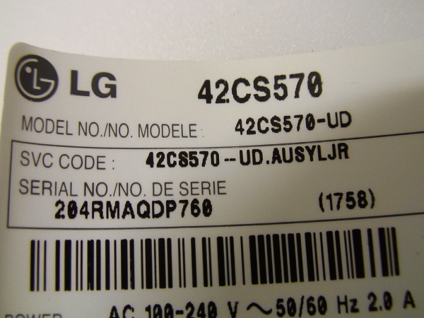 THIS PART PULLED FROM WORKING 42" LG LCD , MODEL # 42CS570.
