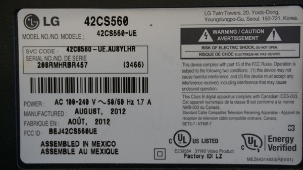 THIS PART WAS PULLED FROM LG 42" LCD, MODEL # 42CS560-UE, UNIT WORKING COMPATIBLE ALL MODEL # BELOW.