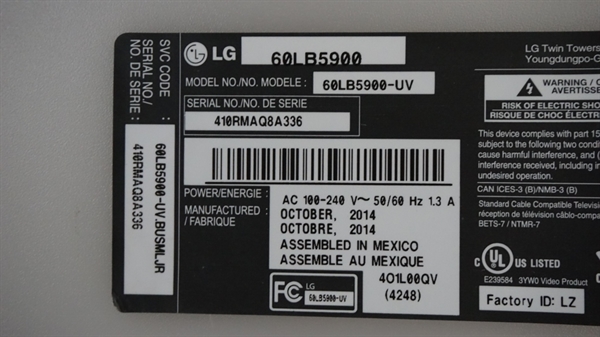 LG Electronics/Zenith 60LB5900-UV.BUSMLJR