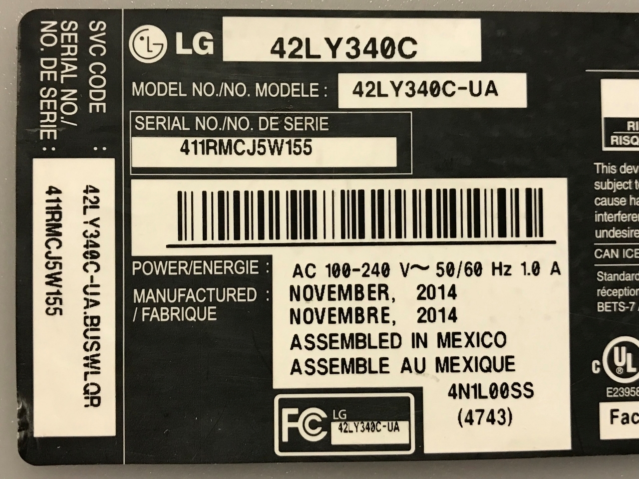 THIS PART WAS PULLED FROM LG 42" LED TV MODEL # 42LY340C-UA.
