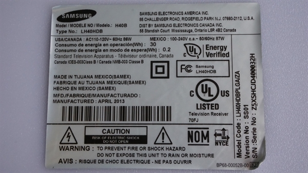 THIS PART WAS PULLED FROM WORKING SAMSUNG 40" LED TV , MODEL # LH40HDBPLGA/ZA.