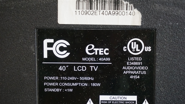 ETEC 40A99 40" LCD TV, ETEC 40 LCD TV 1080P, 40A99 LCD TV
