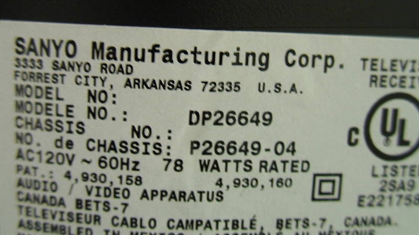 THIS PARTS WE PULLED FROM WORKING 26" LCD SANYO MODEL # DP26649, CHASSIS # P26649-04 WE CHECKED AND TESTED ALL FUNCTION BEFORE PUT ON HDTVPARTS STORE.