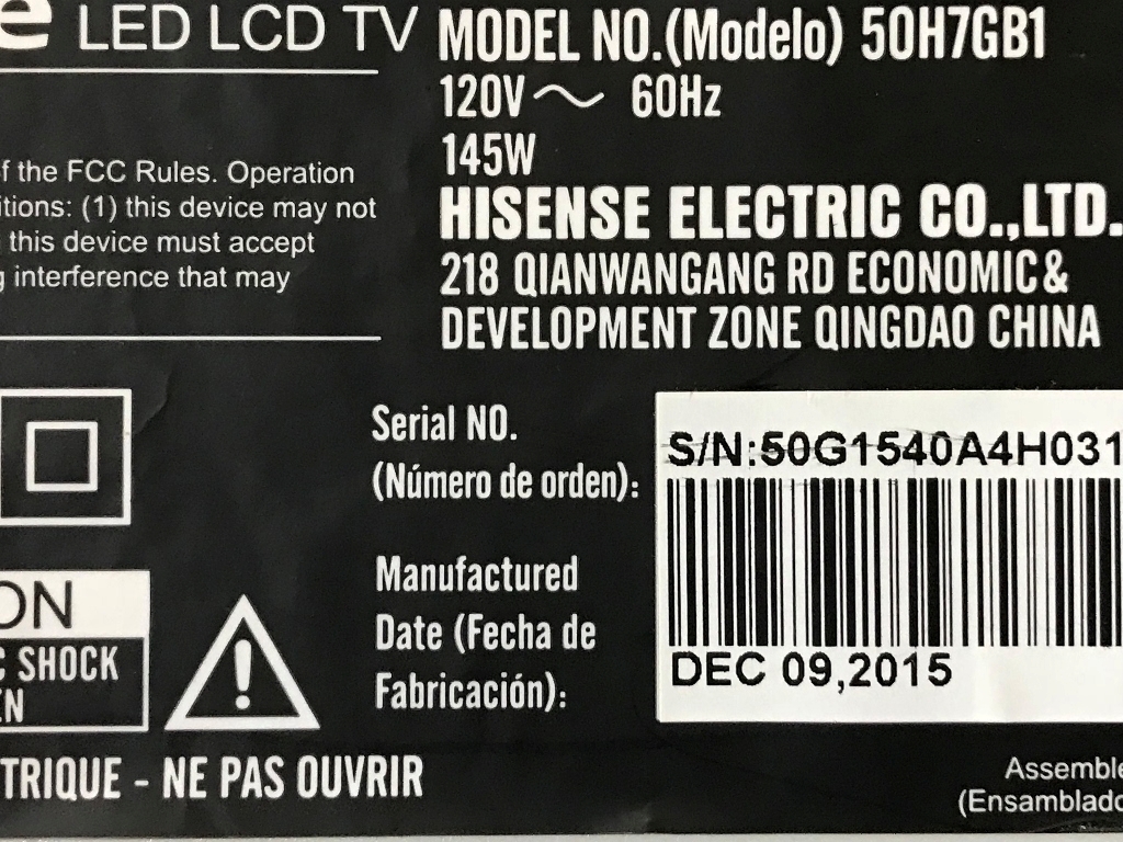 - HISENSE 50" LED TV Digital Board Model # 50H7C