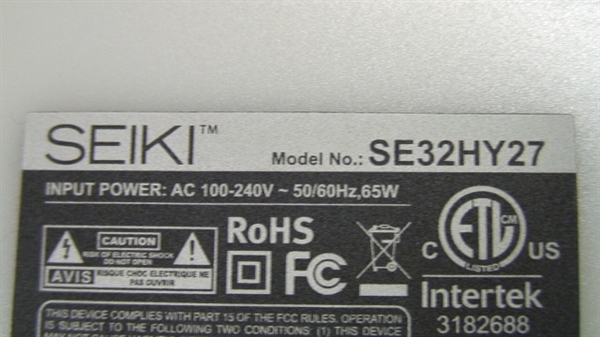 THIS PART WAS PULLED FROM SEIKI 32" LED TV, MODEL # SE32HY27.