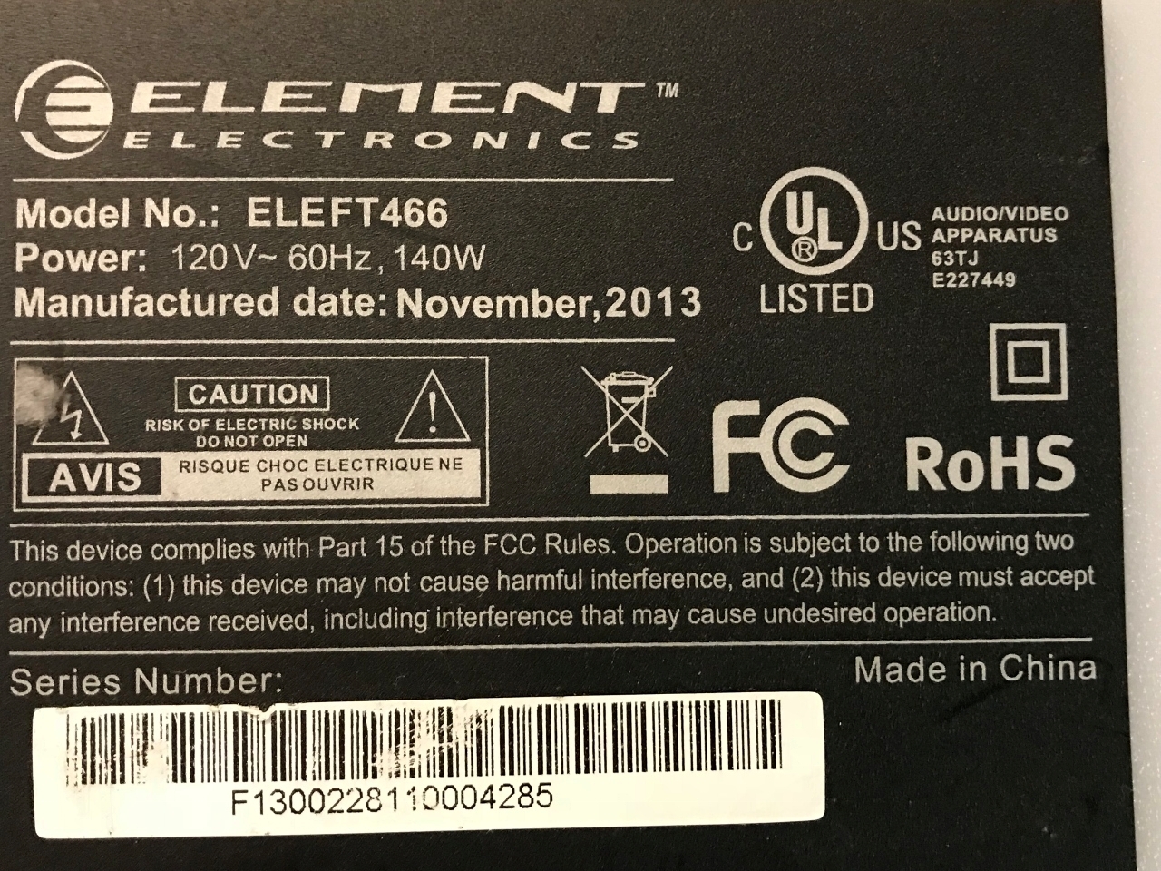 THIS PART WAS PULLED FROM WORKING 46" ELEMENT LED TV MODEL # ELEFT466.