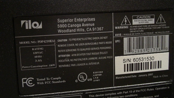 ILO 42 PLASMA TV, 42 PLASMA TV, PDP4210EA1 ILO PLASMA TV, PDP421OEA1 ILO TV, 42 PLASMA TV