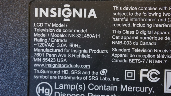 - Insignia 32" LCD TV Ir Sensor, Model # NS-32L450A11