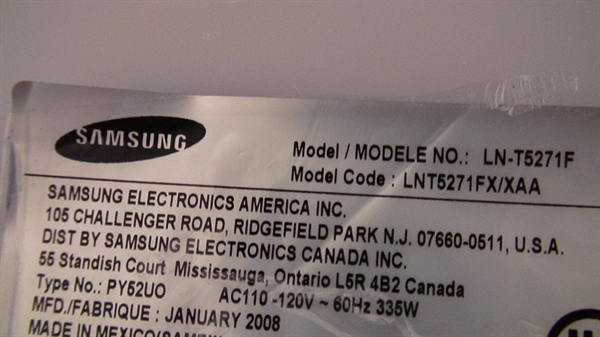 THIS PART PULLED FROM WORKING SAMSUNG 52" LCD MODEL # LN-T5271F S, MODEL CODE # LNT5271FX/XAA, UNIT WORKING COMPATIBLE ALL MODEL # BELOW.