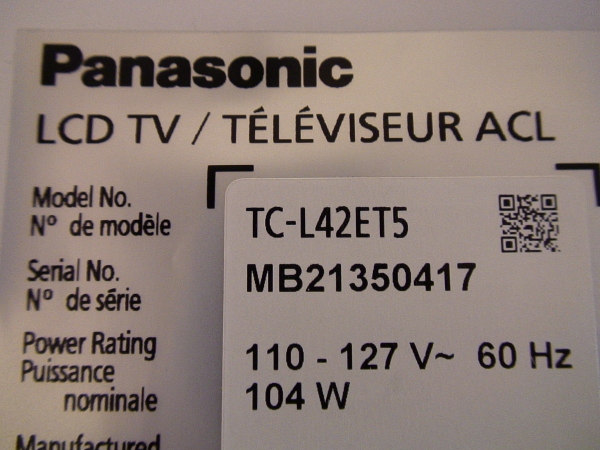 PANASONIC 42" LED TV , MODEL # TC-L42ET5, UNIT WORKING COMPATIBLE ALL MODEL # BELOW.