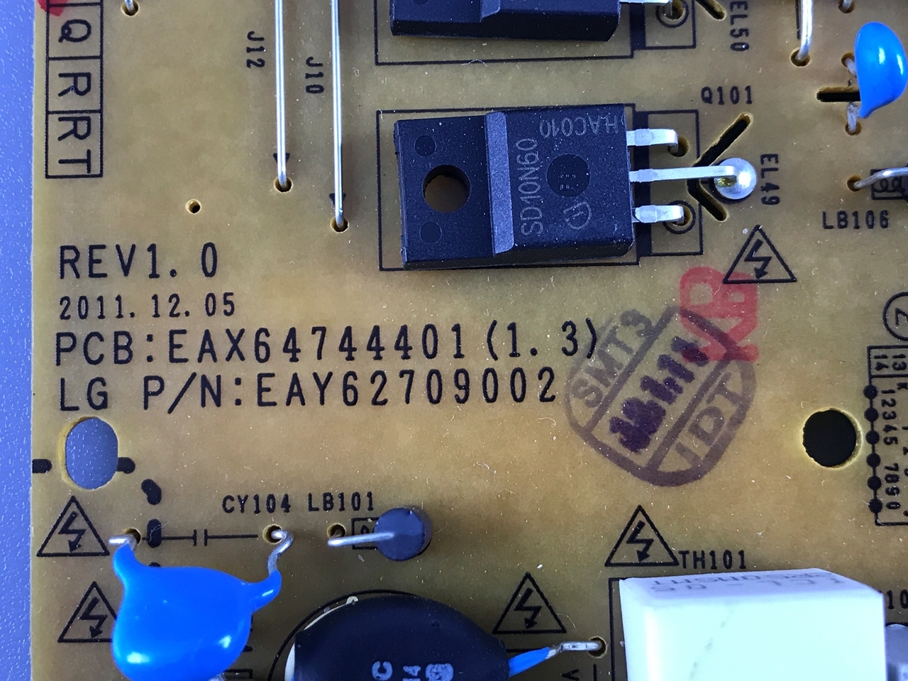 Manufacturer part number: EAY62709002, EAX64744401(1.3), 3PAGC10091A-R, A6059H, STR-A6059H, 18NM60N, SD10N60, L6599AD, KF12N60