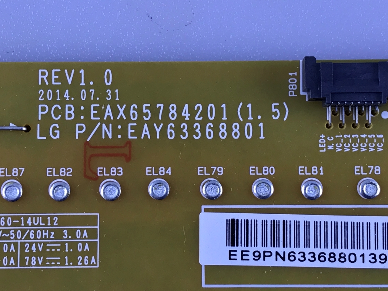 Lg 60" LED TV Power Supply Board: EAY63368801, EAX65784201(1.5), LFP60-14UL12, 60UB8200-UH, 60UB8200-UH.AUSWLJR