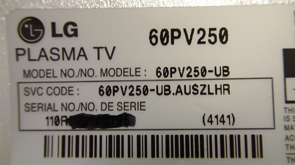 LG 60PV250, 60PV250-UB, LG 60PV250 60-Inch 1080p TruSlim Frame Plasma TV