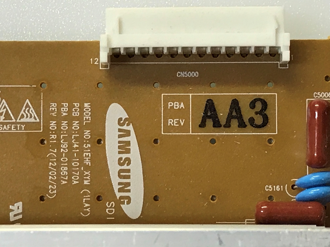 SAMSUNG 51" PLASMA TV Y-MAIN BOARD (VERSION # EFG, LJ41-10170A, LJ92-01867A) UNIT FULL FUNCTION TESTED & CERTIFIED BY TECHNICIAN (100% WORKING CONDITION).