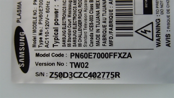 THIS PART PULLED FROM WORKING 60" SAMSUNG TV , MODEL # PN60E7000FFXZA, UNIT WORKING COMPATIBLE ALL MODEL # BELOW.