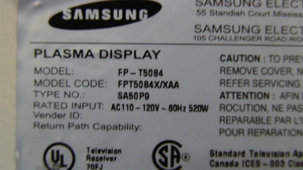 LJ92-01424A, LJ41-04418A, SAMSUNG, MODEL # FP-T5084, LJ92-01424A, TVPARTS